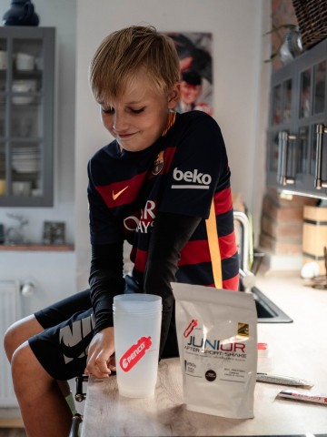 Zároveň, aby dítě po tréninku nastartovalo správnou regeneraci a bylo připraveno na další zátěž, doporučujeme doplnit vše sportovním nápojem JUNIOR AFTER SPORT SHAKE. Jedná se o jedinečného představitele regeneračního koktejlu pro sportující děti od 6 let. S 30% obsahem bílkovin, vápníkem a vitamínem D, které jsou potřebné pro normální růst a vývin kostí u dětí, a navíc se železem v organické formě a beta-glukany. Je vhodný pro mladé sportovce ihned po výkonu a ideální jako druhá večeře nebo jako chutný koktejl pro děti, které nerady snídají.